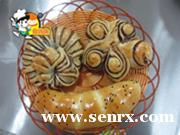 西式面点初级班学习内容:香葱肉松包、毛毛虫包、火腿肠包、海绵蛋糕、奶油面包、老婆饼