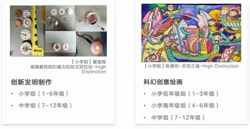 中国展分为两个作品类别,五个参与组别,各组别与类别分别设置奖项如下,参与队员均会获得参展证书。