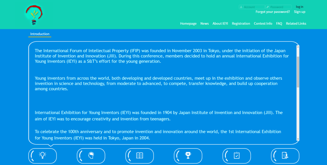 IEYI全称是世界青少年创新发明展(International Exhibition for Young Inventors,简称IEYI),创办于2004年,旨在以发明和创造为纽带,培养青少年的设计思维、突破创新,提升他们对于科学核心概念的理解。截止目前,已有近40个国家和地区参与其中,为青少年提供尽情挥洒科学创意的国际交流平台。
